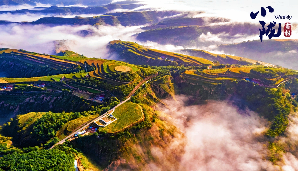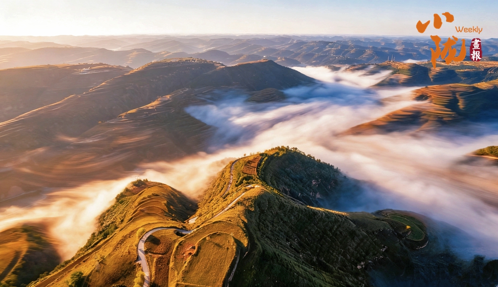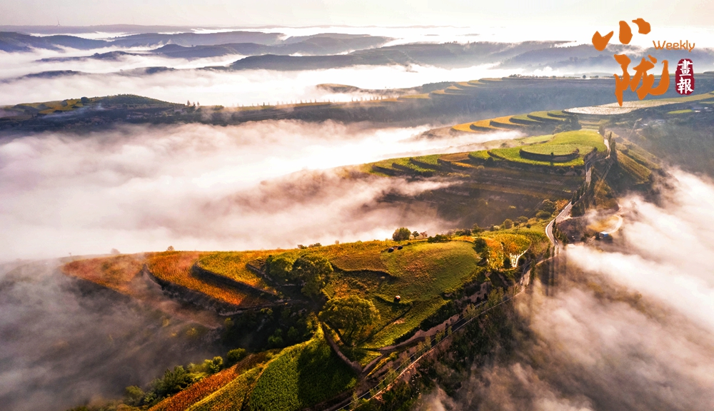 清晨,云海、山嶺與樓宇,恍如人間仙境一般。這不僅是視覺的盛宴,更是對黃土塬生態(tài)之美的深情禮贊:昔日這片貧瘠荒涼的土地,眼下已是生機勃發(fā)、綠意盎然。