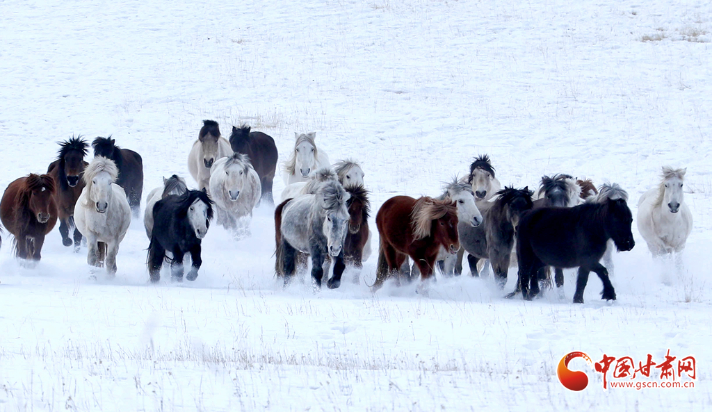 1月30日,張掖市肅南裕固族自治縣康樂草原上,康豐村牧民策馬馳騁,百匹駿馬踏雪奔騰,牧民們用這種獨(dú)特的方式迎接即將到來的新春。