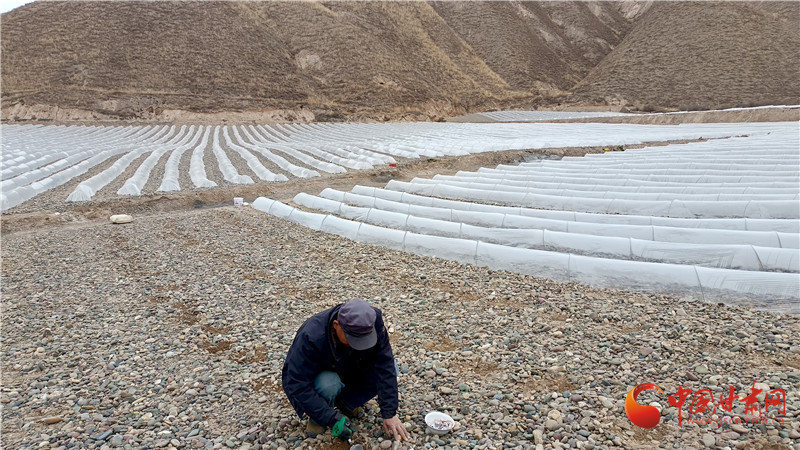 3月18日,城關區(qū)青白石街道水源村村民正在播種白蘭瓜