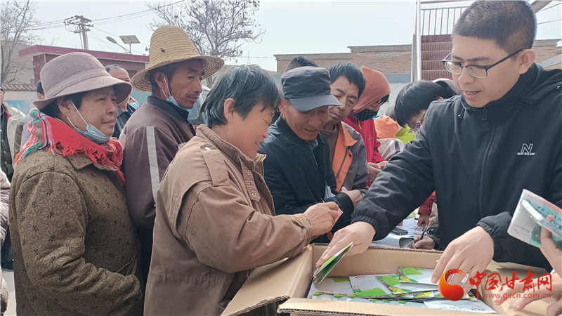 科技人員為水源村村民發(fā)放白蘭瓜種子