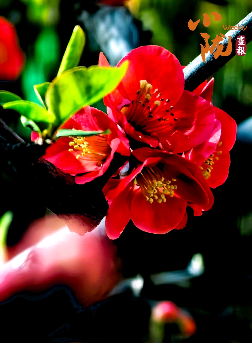 貼梗海棠花瓣緊緊貼在枝頭,嫩黃的花蕊在暖陽(yáng)下格外醒目,新綠的葉片襯著灼灼花色,暈染出濃烈又鮮活的春日生機(jī)。