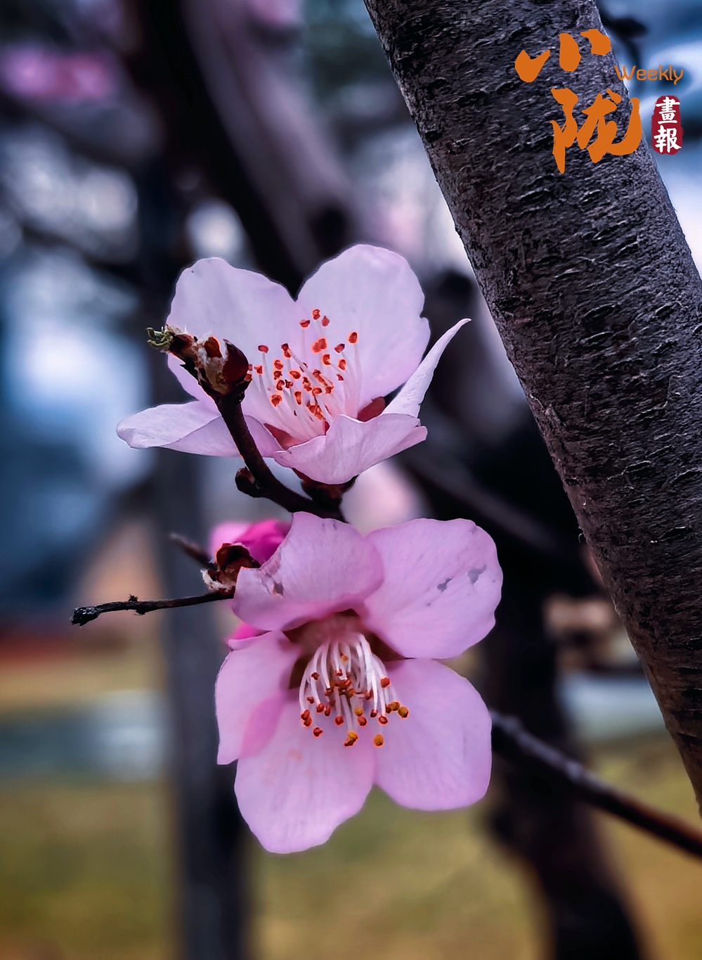 紫葉李正悄然綻放,粉白的花瓣簇?fù)碓谥︻^,搭配著紫褐的嫩葉,在暖陽(yáng)下暈出柔美的春日氛圍,為街頭添上一抹清新靈動(dòng)的色彩。