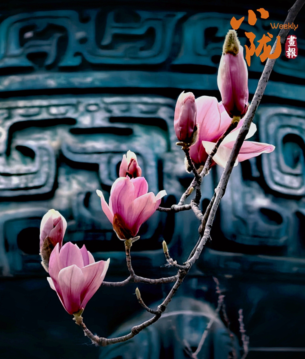 古建的深色紋飾墻前,二喬玉蘭正次第綻放。粉紫的花瓣柔潤(rùn)舒展,含苞的花蕾裹著絨毛,虬枝探出,將春日的雅致與古樸的街景相融,滿是詩(shī)意。