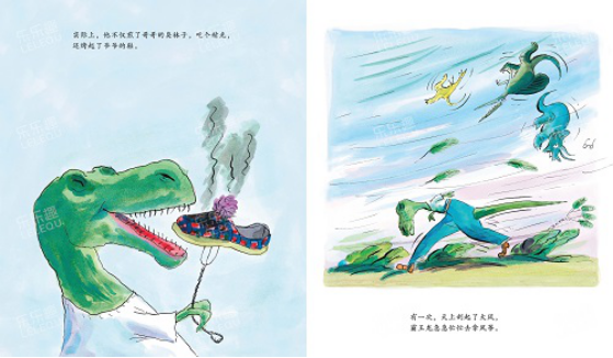 一只可憐的霸王龍弄丟了自己的眼鏡。沒有眼鏡,他分不清馬桶和洗臉盆;沒有眼鏡,他分不清咸魚和臭襪子……直到一個大風(fēng)天,霸王龍拉著一個“風(fēng)箏”吃力地爬上了一座“小山”,突然,“小山”站起來了,“風(fēng)箏”拉著他飛走了。霸王龍會遇到危險嗎?他能平安地回來嗎?