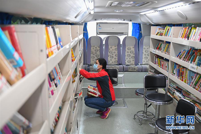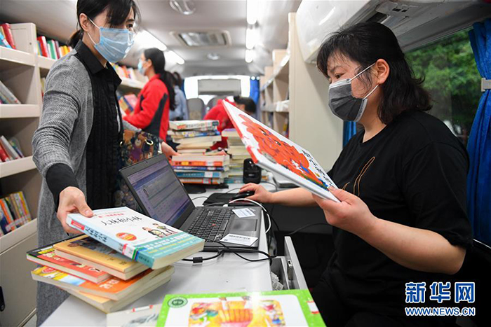 3月26日,在長沙岳麓區(qū)石嶺塘社區(qū),市民在流動圖書館里辦理借書。 近日,在做好疫情防控工作的同時,長沙流動圖書館恢復(fù)運(yùn)營。長沙流動圖書館是長沙圖書館的總分館流動服務(wù)項(xiàng)目之一,以大巴車為載體,每月定期到社區(qū)、學(xué)校、企業(yè)、工地等區(qū)域,為市民提供閱覽、咨詢、辦證、借書、還書等便捷化公共服務(wù)。 新華社記者 陳澤國 攝
