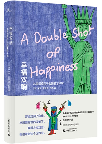 書(shū)名《幸福雙響》(A Double Shot of Happiness),來(lái)自蒂姆最愛(ài)的創(chuàng)作之一。朱迪用優(yōu)美且感人肺腑的筆觸,訴說(shuō)著蒂姆漫長(zhǎng)的人生旅程——從被診斷為重度自閉癥患者到嶄露頭角成為備受推崇的藝術(shù)家,以及一個(gè)能夠愛(ài)人與被愛(ài)的年輕人。