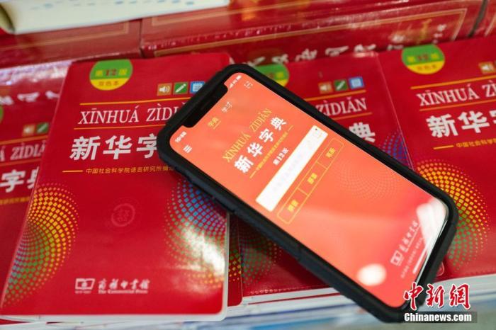 8月11日,北京圖書大廈出售的《新華字典》(第12版)及同步上線的同名手機應(yīng)用程序。中新社記者 侯宇 攝