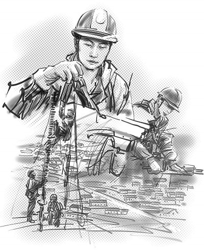 就個人條件而言,胡洪煒一米八的身高其實并不適合帶電作業(yè),但三年軍營練就的結(jié)實精壯以及先天的敏捷機(jī)靈完美地補(bǔ)充了身高的短板。多年之后,閆旭東依然清晰地記得徒弟曾經(jīng)帶給他的震撼。帶電作業(yè)兩大危險,一是高空,一是帶電。軟梯是電力人得以騫翮遠(yuǎn)翥的依傍,可攀爬軟梯卻一度打濕了胡洪煒振翅欲飛的翅膀。新員工入職培訓(xùn)的訓(xùn)練場上,別人用一個月已經(jīng)熟練掌握了技巧,笨鳥胡洪煒卻剛剛及格。氣喘吁吁地爬到基塔的頂端,將自己蟄伏在離地面幾十米高的電線上,想像自己是一只俯瞰大地的鳥雀,一只暫時休整的雨燕,抑或是被印刷在音樂課本上的音符。音符在胡洪煒耳邊輕聲吟唱:我要飛得更高,更高!