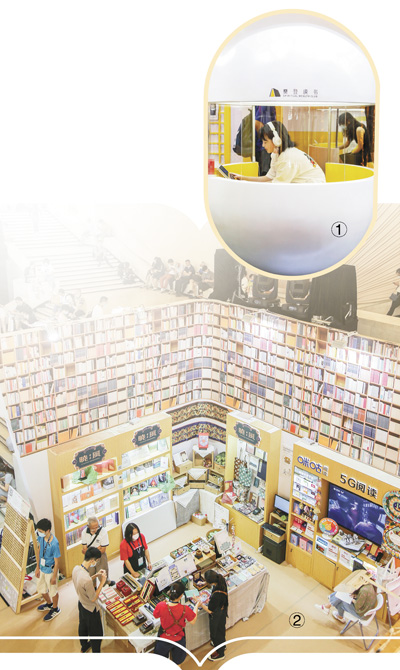 圖①:讀者在上海書展現(xiàn)場體驗(yàn)“未來自習(xí)室”。