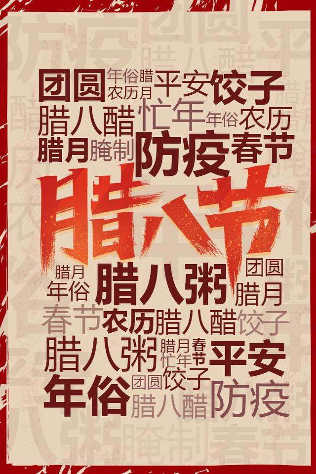 關于“臘八”的關鍵詞中,臘八節(jié)、臘八粥、平安、團圓、年俗、春節(jié)、餃子、臘八醋、防疫等成為了網(wǎng)民熱議較多的詞匯。