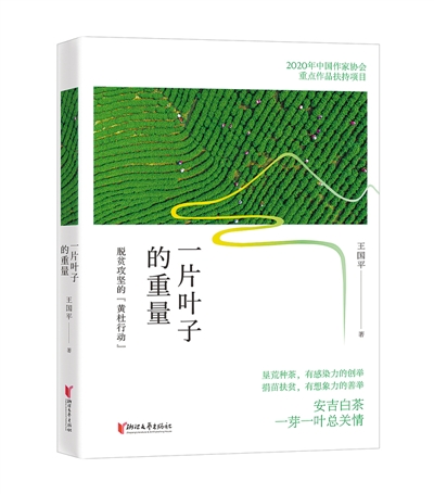 王國平報告文學《一片葉子的重量——脫貧攻堅的“黃杜行動”》寫的黃杜村,位于浙江省湖州市安吉縣,那里曾經(jīng)是個貧困山村。“一片葉子富了一方百姓”,在擺脫貧困的道路上,村民們艱苦奮斗,使黃杜村成為安吉白茶的重要產(chǎn)地,家鄉(xiāng)面貌煥然一新。