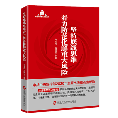 《堅持底線思維著力防范化解重大風險》是該系列叢書的總論,由中央黨校(國家行政學院)副校長應(yīng)急管理培訓中心(中歐應(yīng)急管理學院)主任(院長)馬寶成等合作撰寫,現(xiàn)已由國家行政管理出版社正式出版發(fā)行。