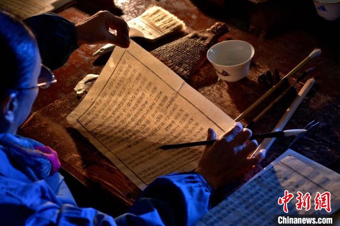 中新網(wǎng)成都11月16日電 (唐倩)戴著一副老花眼鏡,袁東玨坐在修補臺旁,臺面上平鋪著一疊泛黃殘損的書頁,彎彎曲曲滿是蟲蛀痕跡,一張張粘連在一起,這是一部清代年間的族譜,蟲蛀很嚴重。她很小心地揭起一頁布滿蛀洞的古籍,輕輕展開,有的地方緊緊粘在一起,她用一把竹子磨制的起子輕輕挑開。