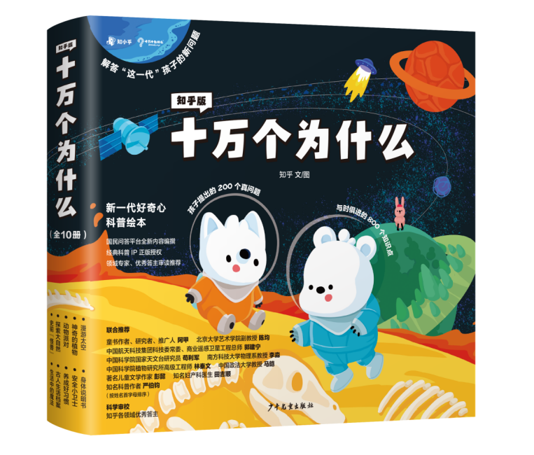 不是所有的科普讀物,都能叫《十萬個為什么》。1961年至今,《十萬個為什么》累計發(fā)行量近2億冊,是至今仍未被超越的現(xiàn)象級科普圖書。這套書在普及和傳播科學知識方面,發(fā)揮了非常積極的作用,影響了中國幾代青少年,堪稱是新中國影響力最大的青少年科學啟蒙讀物。作為國民級科普經典,《十萬個為什么》誕生至今已經60多年。盡管已經有了之前版本的《十萬個為什么》,但是時代是不斷進步的,特別是進入數(shù)碼時代以后,孩子們比以往的所有時代,擁有著更多的信息和知識,腦袋瓜里也萌發(fā)著更新的問題和疑惑。他們發(fā)出的越來越多“超綱”問題,是以前的課本、科普書上沒有的,也讓父母們經常面對“不知如何作答”的情況。新的“為什么”,需要新的解答。在少兒經典科普《十萬個為什么》出版60周年之際,知乎攜手上海少年兒童出版社,收集當代孩子的真問題,邀請各領域機構和專家為孩子們寫下新答案,推出了全新的知乎版《十萬個為什么》,盡量讓孩子們的問題都有答案。