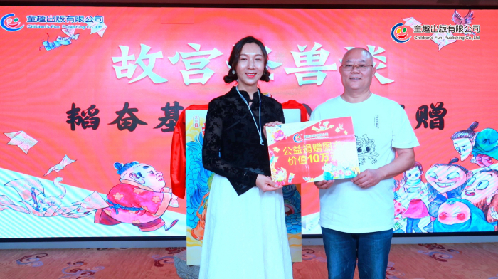 分享會(huì)上,童趣出版有限公司向韜奮基金會(huì)捐贈(zèng)了《故宮怪獸談》及世界名著等價(jià)值10萬(wàn)碼洋的作品。插畫(huà)師譚諾專門(mén)為韜奮基金會(huì)創(chuàng)作了公益閱讀畫(huà)作,永久免費(fèi)授權(quán)韜奮基金會(huì)作為公益宣傳使用。