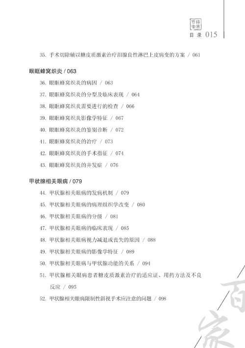 全書主要介紹了常見眼眶炎性疾病及甲狀腺相關眼病,從病因、病理、臨床表現(xiàn)、輔助檢查、診斷、鑒別診斷、治療及預后等多個方面對其加以敘述。本書條理清晰,簡明扼要,理論性強,有較強的臨床實用性和指導意義。