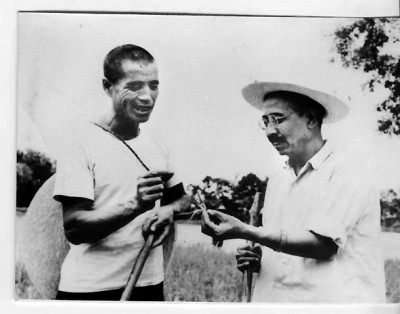 柳青(右)與《創(chuàng)業(yè)史》中梁生寶原型人物王家斌在一起檢查生產。