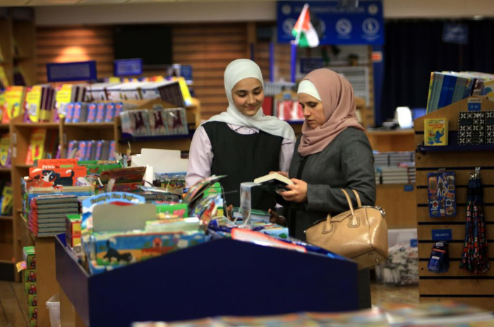 2月13日,在約旦亞喀巴港,一名女孩在“望道號”上挑選書籍。