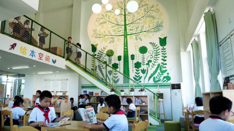 在保證館藏圖書品質(zhì)和數(shù)量基礎(chǔ)上做好閱讀軟硬件輔助和服務(wù)。與少先隊(duì)、團(tuán)委、學(xué)生會合作,組建圖書管理員志愿者服務(wù)隊(duì),開展創(chuàng)建讀書文化暨圖書閱讀與交流的線上線下活動(dòng),舉辦讀書沙龍、讀書節(jié)、故事會、經(jīng)典誦讀比賽等,讓圖書館成為實(shí)現(xiàn)閱讀目標(biāo)的最佳場域。