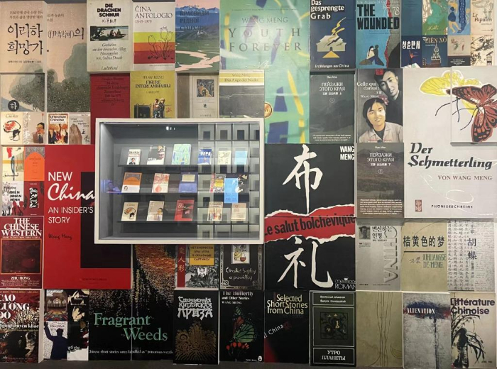 展廳內(nèi)的多語言版本著作墻。(中國(guó)國(guó)家博物館供圖)