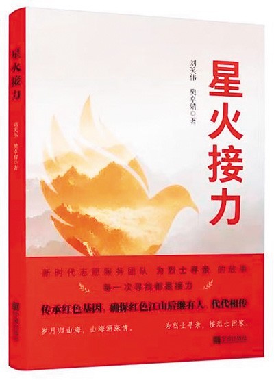 本報電 (張立童)近日,由《文藝報》社等主辦的紀實文學《星火接力》作品研討會在京舉行?!缎腔鸾恿Α酚婶斞肝膶W獎得主劉笑偉及青年作家樊卓婧共同創(chuàng)作,以“我為烈士來尋親”為主題,塑造了志愿服務工作者群像。該書講述了烈士尋親志愿服務團隊自2012年起到訪25個?。▍^(qū)、市),足跡遍及國內外742座革命烈士陵園,建立起革命烈士數據信息庫,搭建遍布全國的志愿者網絡,為近1500位烈士找到親屬,讓客葬異鄉(xiāng)的英烈“回家”的故事。