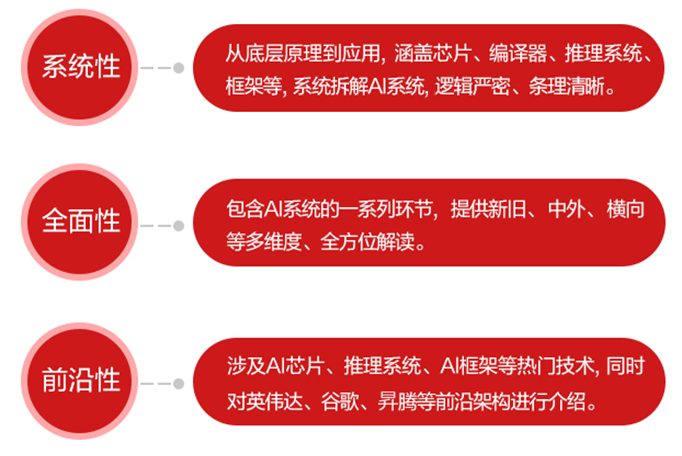 系統(tǒng)性與全棧視角?!禔I系統(tǒng):原理與架構(gòu)》更側(cè)重以系統(tǒng)架構(gòu)視角看待人工智能,而不是拘泥于特定深度學(xué)習(xí)算法。本書(shū)從AI系統(tǒng)的整體概況出發(fā),分為AI硬件與體系結(jié)構(gòu)、AI編譯與計(jì)算架構(gòu)、AI推理系統(tǒng)與引擎、AI框架核心模塊四篇進(jìn)行闡述,深入探討了AI系統(tǒng)背后從底層到應(yīng)用的軟硬件全棧架構(gòu),為讀者提供了一個(gè)全面的學(xué)習(xí)路徑。