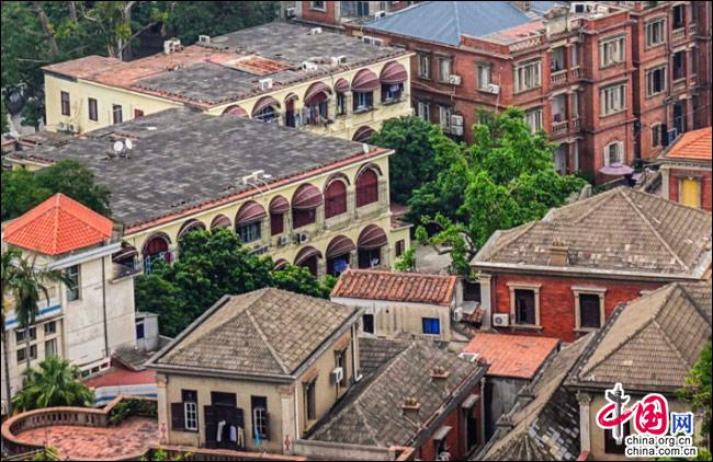 如果說(shuō)日光巖匯聚了鼓浪嶼的自然鐘靈,那么萬(wàn)國(guó)建筑群則沉淀著鼓浪嶼的歷史底蘊(yùn)。自《南京條約》簽訂以后,廈門(mén)成為五個(gè)通商口岸之一,西方列強(qiáng)便蜂擁來(lái)到鼓浪嶼,搶占風(fēng)景最美的地方,建造別墅公館。再加上各方歸僑所建的各式別墅,鼓浪嶼的建筑真可謂中西薈萃、異彩紛呈,無(wú)愧乎“萬(wàn)國(guó)建筑博覽”之名。若真要探索起來(lái),從宗廟祠堂到園林人家,從歇山重檐到燕脊垂花,從羅馬式立柱到巴洛克浮雕……你會(huì)驚嘆于這座小小的島嶼所容納的歷史。而現(xiàn)在,這些建筑早已斂起最初的華麗,自在地散落于海畔和山坡,任隨綠樹(shù)掩映、藤蔓攀巖,花影綽約間,兀自守護(hù)一方恬靜與安然。