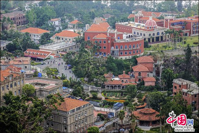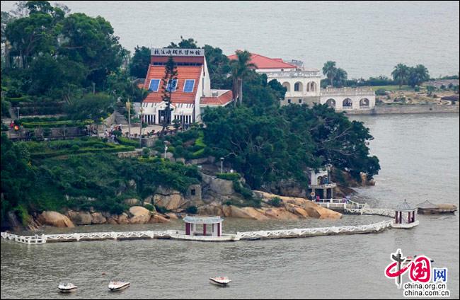 如果有這樣一座島嶼——遠(yuǎn)處是一方寧?kù)o的藍(lán)天,近處是一片幽深的綠樹(shù),藍(lán)與綠之間,是逶迤而去的清水紅磚……極目遠(yuǎn)眺,只見(jiàn)她濃淡相宜、遠(yuǎn)近相安,仿佛一幅肅穆祥和的印象派油畫(huà);細(xì)細(xì)聆聽(tīng),似乎還有一支悠揚(yáng)的鋼琴曲,在伴隨海鷗與濤聲,不時(shí)從畫(huà)中飄來(lái)……