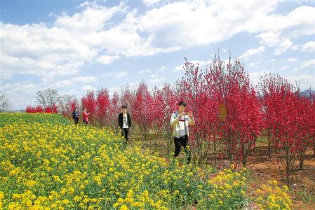 郭坪的麗桃花多為紅色,那紅,于深紅中又透著一種清麗的粉,使繁盛的花朵,飽滿中又呈現(xiàn)出一種吹彈可破的輕盈,而沁人心脾的花香,又使人忍不住就想把臉埋在繁花間,把花香全都嗅進(jìn)五臟六腑。此時,花株猶如無數(shù)把紅傘,傘下,五顏六色的衣裳與花樹相映成趣。樹上的花對著人笑,地上的人對著花笑。“去年今日此門中,人面桃花相映紅。人面不知何處去,桃花依舊笑春風(fēng)。”崔護(hù)的詩也不知不覺從腦海里跳將出來。傳說詩人崔護(hù)的這首《題都城南莊》寫的是,他進(jìn)京考進(jìn)士落第,一個人悵然走到京城南郊。走得口渴到一戶人家討水,一美麗女子站在庭院的桃花下,嬌羞地把一瓢水遞給了他,那女子的美貌驚艷了詩人的眼睛。第二年春天崔護(hù)復(fù)來南莊,然而那座庭院里,桃花依然如故,而樹下卻不見了佳人的芳蹤,于是留下此詩。面對花海,也許你會突發(fā)奇想,如果崔護(hù)能在詩里復(fù)活,想必他一定也會來郭坪的麗桃花海走一遭,那么這首詩一定會是另外的意境了。因為此時的花樹下,滿是顧盼生輝的佳人,也不知崔護(hù)要題詩給哪一位女子了。