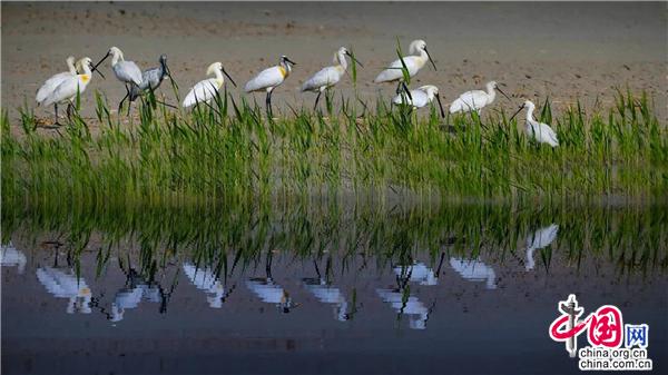 整個春季是鳥類繁忙的季節(jié),也是觀鳥的最佳時間,春天的沙湖,鳥兒們用濺起的水花告訴我們,有一種沖動叫作向往,有一段旅程叫作回歸。每當(dāng)看到那些呆頭呆腦、憨態(tài)可掬的雛鳥,聽到那吱吱呀呀的叫聲,沙湖人的臉上都會露出笑容。而沙湖人對于鳥的喜愛是與生俱來的,每年有數(shù)以百萬計的候鳥,選擇沙湖作為中轉(zhuǎn)棲息地,安全舒適的環(huán)境,讓許多候鳥選擇留在了這里。