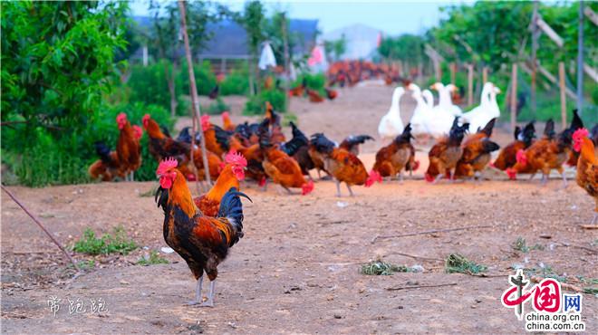與此同時(shí)還散養(yǎng)雞、鵝。尤其是散養(yǎng)的雪山草雞很有特色。雪山草雞生性好斗,爪子厲害,毛建偉用它們給作物除草、除蟲,省去了一大筆人工養(yǎng)護(hù)費(fèi)用。這些雞,每年9月份以后開始養(yǎng),四個(gè)月后,母雞下蛋可賣土雞蛋,年底這些雞把草除光了,這“溜達(dá)”著長大的雞肉質(zhì)鮮美,非常受大家歡迎,很好賣。