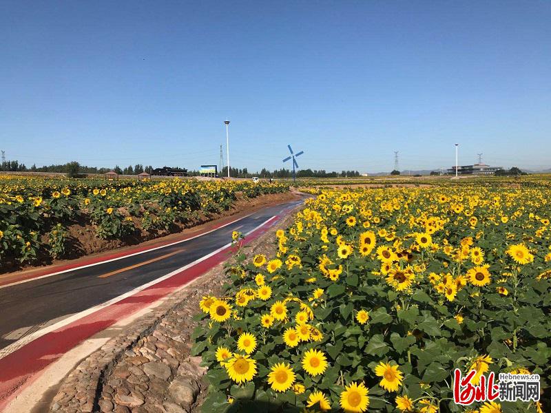 體驗(yàn)了沙河城市內(nèi)的現(xiàn)代氛圍后,嘉賓們來到紅薯嶺田園綜合體,這里是合作社種植基地,也是沙河新興的網(wǎng)紅打卡地,數(shù)千畝油葵花迎著驕陽盛開,乘坐觀光車穿越其中,如白魚游弋在黃色的花海中,讓身心從城市瞬間回歸田野。“這里給了我們一個回歸自然、放松心情的美好時光,讓我們放下繁忙的工作,釋放生活的壓力,遠(yuǎn)離工廠的嘈雜和城市的喧囂。”游客何先生說。