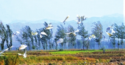 秋日的白銀天高云淡,風(fēng)輕氣爽。隨著一年的稻田收割,成群的白鷺和野鴨等鳥(niǎo)類棲息在景泰縣五佛鄉(xiāng)成片的稻田、魚(yú)塘附近,或低空飛翔,或嬉戲覓食,形成一幅自然和諧的美麗畫(huà)卷?!?/p>