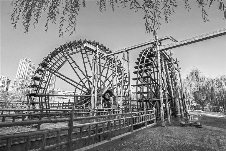 水車,蘭州的又一張名片,巧取黃河之水滋養(yǎng)著這片熱土,至今已有近500年的歷史。矗立在黃河岸邊一個(gè)個(gè)巨大的水車,吟唱著古老的歌謠,水車邊,羊皮筏子漂流于黃河之上,一切都顯得古老而又寧靜……