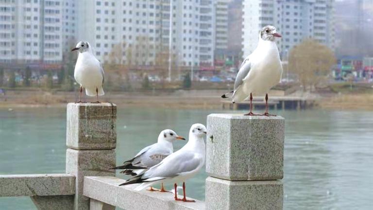 近年來,隨著黃河生態(tài)環(huán)境不斷改善及人們愛鳥、護(hù)鳥的生態(tài)意識不斷增強(qiáng),越來越多的野生鳥類前往劉家峽越冬。紅嘴鷗作為一種對生態(tài)環(huán)境和河流水質(zhì)要求較高的鳥類,每年與永靖相約,沿河居民來到河邊觀鳥喂鳥,紅嘴鷗等鳥類或駐足歇息,或追逐戲水,或悠閑覓食,或盤旋飛翔……上演著人鷗和諧相處的生態(tài)美景,各地的攝影愛好者也紛紛前去拍攝采風(fēng)。