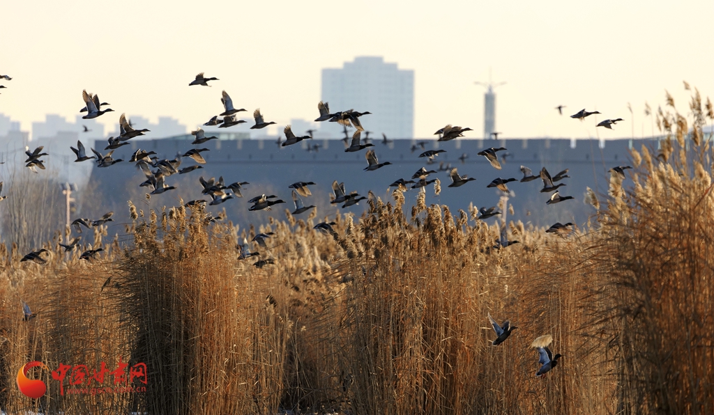 12月15日,張掖國家濕地公園蘆葦蕩漾,野鴨戲水覓食,呈現(xiàn)出一派充滿活力的蘆葦野鴨戲水圖,為冬日的濕地公園增添了新的趣味。