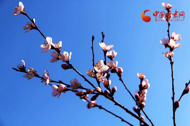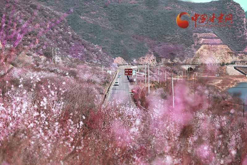 在五龍山,漫山桃花競相開放,香氣襲人,匯成了花的海洋,粉紅的桃花在春風(fēng)里綻放,在春日的陽光下煞是好看,遠遠望去粉的嬌柔婀娜,層層疊疊,瓣瓣舒展。一列火車疾馳而過,滿眼的美景吸引過往游客駐足拍照留念,感受大自然給予這座小城的美好饋贈。