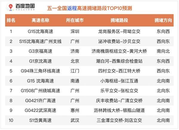 ?。?021年五一假期去程高速擁堵路段TOP10預(yù)測(cè))
