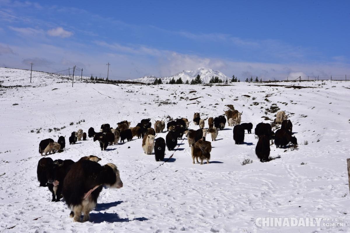 甘肅肅南中華裕固風情走廊景區(qū)迎降雪,銀裝素裹,美輪美奐。