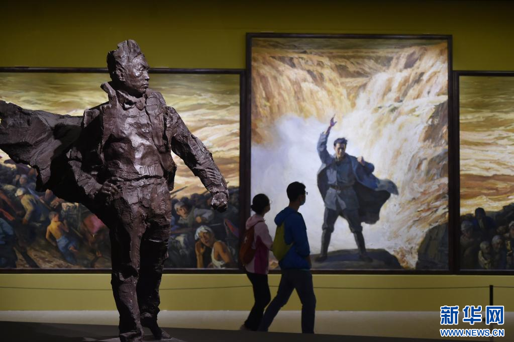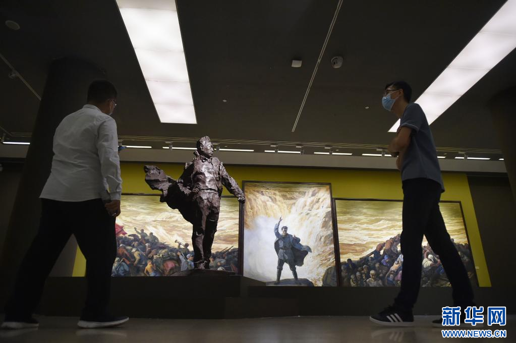 2021年8月14日,觀眾在中國美術(shù)館參觀展出作品。 8月13日,由中國美術(shù)館主辦的“在激流中前進——中國美術(shù)館藏黃河題材美術(shù)精品展”在北京中國美術(shù)館拉開帷幕。該展覽是文化和旅游部2021年度全國美術(shù)館館藏精品展出季項目,也是中國美術(shù)館“典藏活化”系列展之一,共展出中國美術(shù)館藏104位藝術(shù)家創(chuàng)作的中國畫、油畫、雕塑等131件作品。 新華社記者 魯鵬 攝