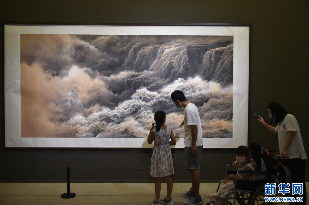8月14日,觀眾在中國美術(shù)館參觀展出作品《大河史詩》。 新華社記者 魯鵬 攝
