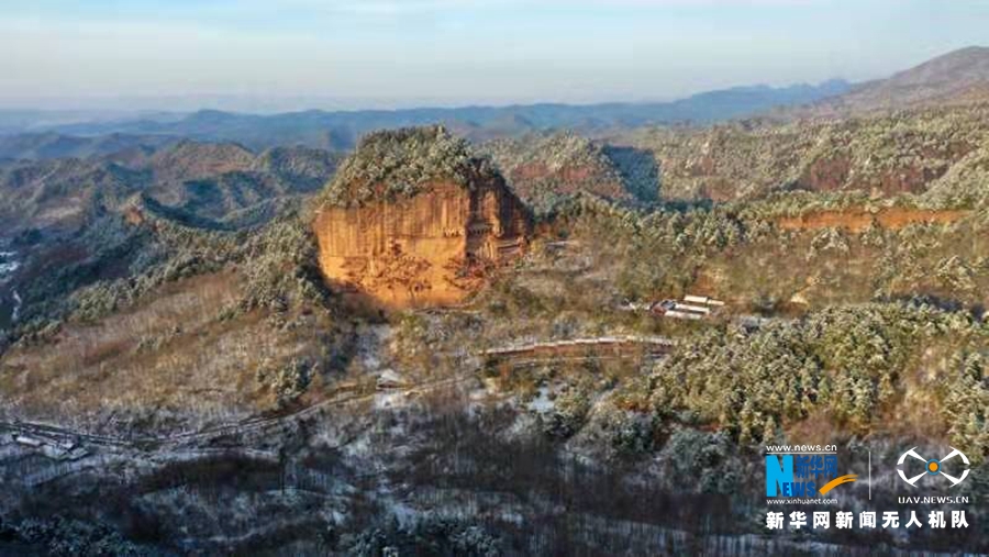 這是近日在甘肅省天水市拍攝的麥積山雪景。新華網(wǎng)發(fā) (周文濤 攝)