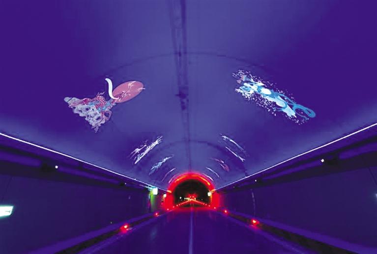 景觀照明系統(tǒng)主體效果充分融合甘肅文化特色,采用“飛天壁畫”“沙漠駝隊(duì)”等元素,利用洗墻燈襯托底色,投影燈展現(xiàn)景觀效果,實(shí)現(xiàn)為司乘人員打造人在畫中游的視覺感官,有效解決隧道內(nèi)長時間駕駛的視覺疲勞和情緒波動,提升司乘人員駕駛舒適度。