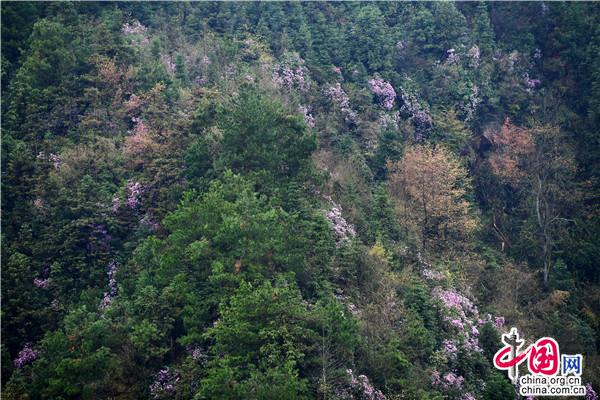 春天的穿巖山國(guó)家森林公園,漫山花開(kāi),層林盡染春色。這時(shí)候的野櫻花、野杜鵑、野映山紅竟相綻放,條條游步道宛如一條條花帶,帶著生機(jī)勃勃和滿天飄舞的芳香,讓游人心曠神怡。走在一條條蜿蜒的棧道,鮮氧環(huán)伺,鼻息間盡是春風(fēng)吹來(lái)的清新氣息。這里人文歷史與自然美景交融,既可在蜿蜒的茶馬古道,重走紅軍路,感受偉大的革命精神,又可在越河而建、凌空百丈的5D玻璃橋體驗(yàn)漫步云端的驚險(xiǎn)刺激,還可在寧?kù)o愜意的云端古村落,感受淳樸的民風(fēng)和歷史悠長(zhǎng)的農(nóng)耕文化奇葩。早晨的日出云海,中午的藍(lán)圖白云,下午的燦爛夕陽(yáng),鮮花與藍(lán)天、彩霞相映,讓人流連忘返。漫山遍野的綠意間,成團(tuán)櫻花、杜鵑、映山紅等夾雜其中,或粉紅或雪白,或紫色或丹紅,密密匝匝開(kāi)滿枝頭。由于雪峰山景區(qū)的落差較高,從300米到1500米,櫻花期、杜鵑花期、映山紅花期交錯(cuò),成梯級(jí)往山背梯田景區(qū)、虎形山大花瑤綻放開(kāi)來(lái),讓賞花期能長(zhǎng)達(dá)2、3個(gè)月之久。