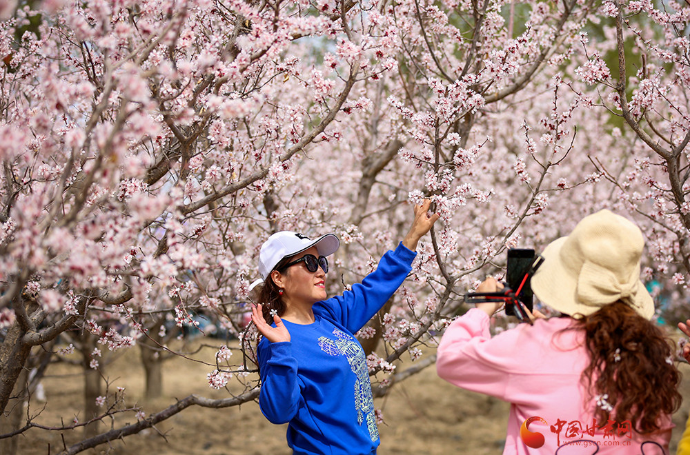 在肅州區(qū)金佛寺鎮(zhèn)的觀山口連片杏林看到,漫山遍野的杏花粉如胭脂,白如脂玉,格外嬌艷,把戈壁深處的小山村裝點得美若仙境,吸引了眾多周邊的市民游客前來賞花踏青。