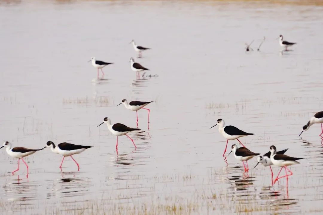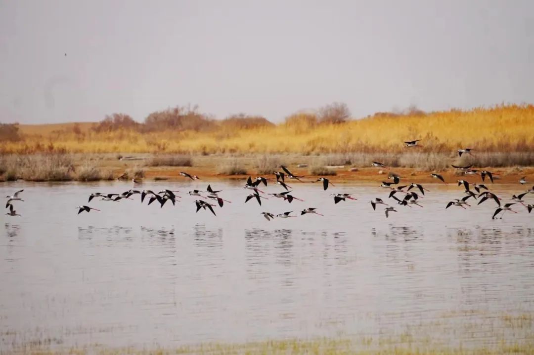 四月的敦煌大地春和景明,在庫(kù)姆塔格沙漠的邊緣,位于陽(yáng)關(guān)濕地的壽昌海子波平如鏡,碧水映襯著祁連山上的雪峰,各種色彩斑斕地鳥兒仿佛收到了春天的邀約,在這里參加一場(chǎng)盛大的聚會(huì)。它們有的在湖面上引頸入水自在覓食,有的踏波翩翩起舞,有的追逐嬉戲鳴唱,有的在岸邊閑庭信步、悠然自得地曬太陽(yáng)......構(gòu)成了一幅多姿多彩的和諧自然生態(tài)畫卷。