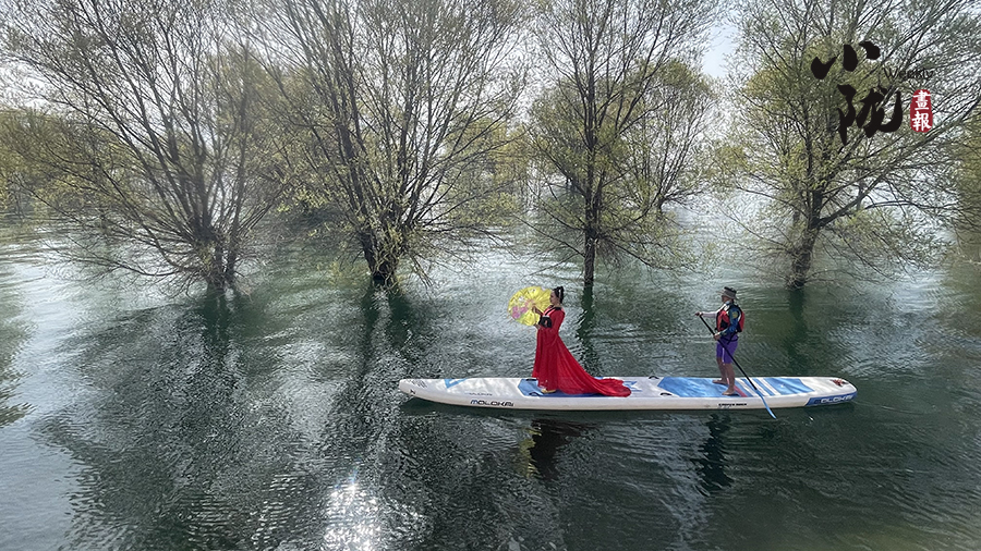 春日里,炳靈湖上鶴舞鷗翔,風如絲,水如綢,蕩舟其中,正是一幅“舟行碧波上,人在畫中游”的美麗畫卷。
