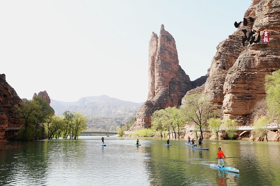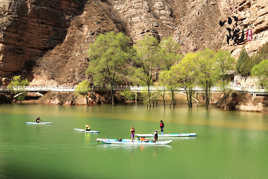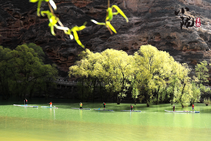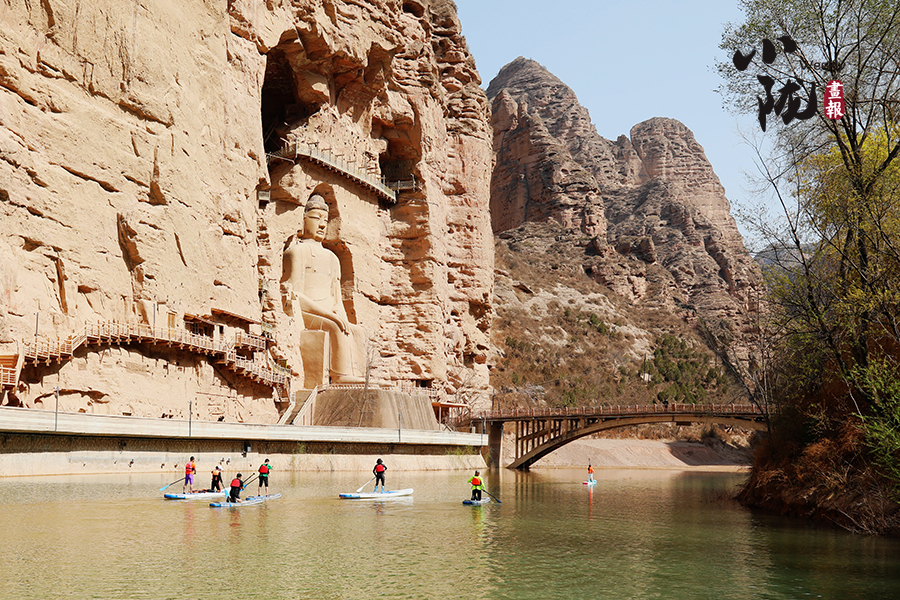 清明前后,炳靈湖水位上漲,寺溝峽谷碧水蕩漾,垂柳依依,景色宜人,槳板愛好者和游客在這里泛舟,以更輕盈的方式邂逅世界文化遺產,摩崖大佛、奇峰赤壁、碧水垂柳,構成了一幅幅絕美的畫圖。