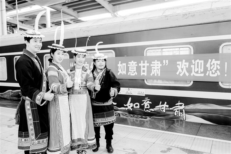 為落實(shí)甘肅省“旅游強(qiáng)省”戰(zhàn)略,自2018年開始,依托甘肅境內(nèi)豐富的旅游資源和鐵路客運(yùn)資源優(yōu)勢(shì),以“一列車、一張圖、一種游”為思路,“環(huán)西部火車游”客運(yùn)旅游產(chǎn)品上線,讓“列車?yán)@著景點(diǎn)過(guò)”變成“火車朝著景點(diǎn)開”,在實(shí)現(xiàn)“引客入甘”等方面發(fā)揮了積極作用。2020年,在甘肅省文化和旅游廳的大力支持下,立足疫情常態(tài)化防控背景,“環(huán)西部火車游”實(shí)現(xiàn)跨區(qū)域王牌旅游產(chǎn)品“三級(jí)跳”:“五一”期間開通隴南到敦煌的旅游線路,打通“如意甘肅”全境全線;8月份,打通四川、重慶、陜西、寧夏、青海等西部6省區(qū)市跨省游小環(huán)線;九月底,隨著由甘肅文旅牽頭的“環(huán)西部火車游”跨區(qū)域旅游產(chǎn)品從廣西一路開到新疆,一條綠色長(zhǎng)龍,儼然一艘“陸上郵輪”,串起西部旅游黃金線,打造出一條“坐著火車游西部”的文旅經(jīng)濟(jì)消費(fèi)帶。
