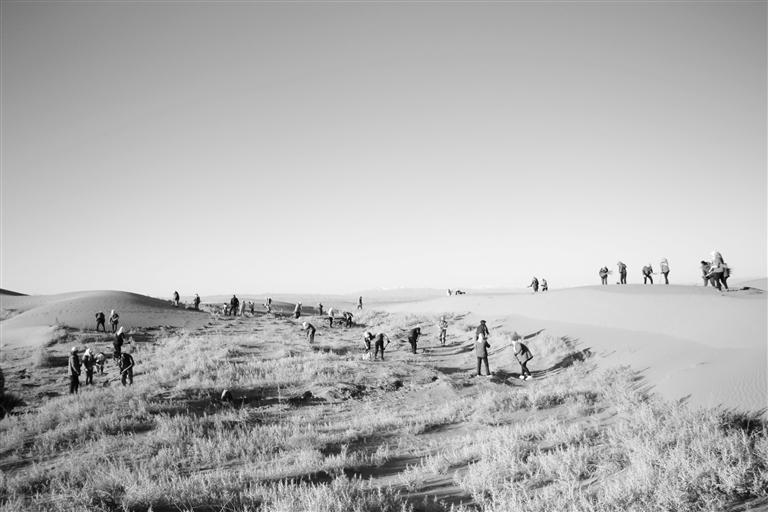 雖然天氣陰沉,氣溫在零攝氏度左右,但郭萬剛心情很不錯(cuò)。這種天氣很可能下雨,下雨意味著林場(chǎng)半個(gè)月前栽種的檸條、梭梭成活率會(huì)大大提高。